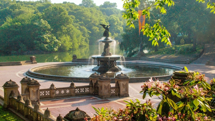 It is the most famous landmark in Central Park, New York, and a beloved spot for visitors and movie fans. A significant movie was shot here, featuring an expansive two-level design and the magnificent Bethesda Fountain.