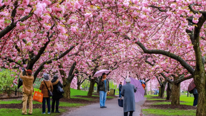 Hands down, this is the best site in Central Park. It is a great place to see Yoshino cherry blossoms in early to mid-April near Bow Bridge. The cherry blossoms in Central Park mostly bloom throughout April, but some bloom in mid-March and early May.